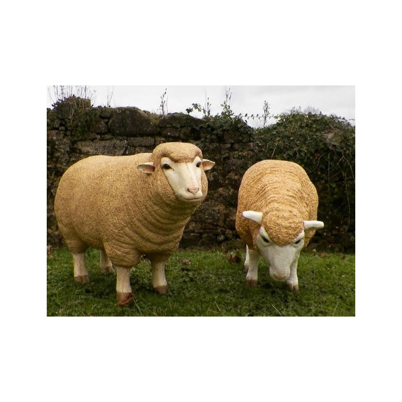 Statue Mouton taille réelle pour décorer votre jardin. Vous pouvez aussi créer une scène de la ferme avec d'autres animaux, agneau, chèvre. Sujet en résine et fibre de verre. Peint à la main (Superbe finition) avec une peinture de qualité prévue pour affronter les aléas météo. Conception artisanale.