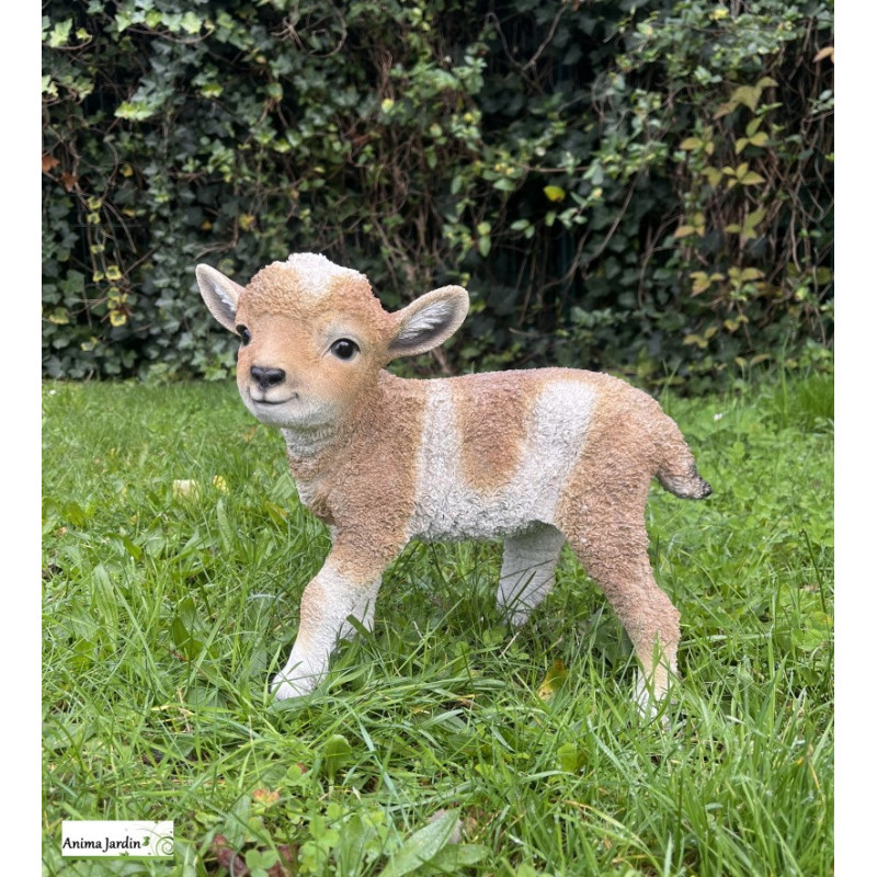 Agneau marron et blanc, animal en résine, décoration extérieure, Anima-Jardin.fr