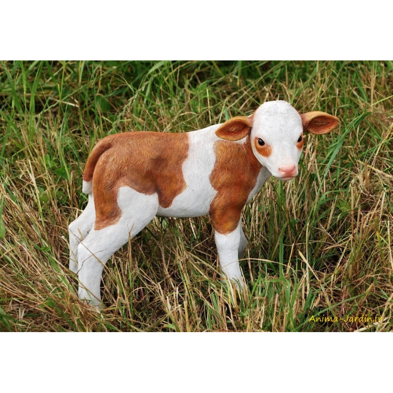 Veau marron et blanc, animal en poly-résine, Anima-Jardin.fr