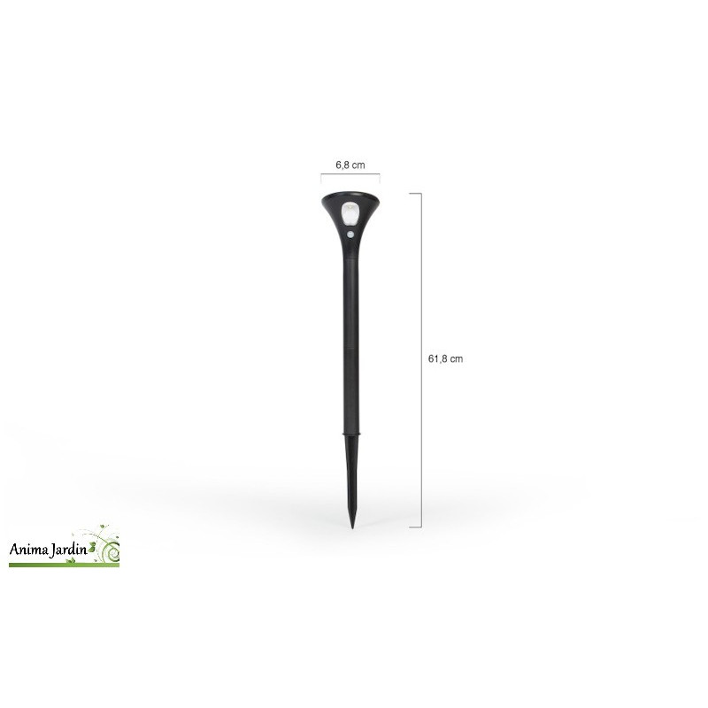 Fabriquées en plastique ABS résistant, ces bornes sont pensées pour durer et résister aux intempéries, certifiées IP44. Avec une autonomie allant jusqu'à 8 heures, elles offrent une performance optimale toute la nuit. Leur design épuré en couleur noir s'intègre parfaitement à vos jardins, allées où autres espaces extérieurs. Équipées de LED haute luminosité et d'une batterie Li-ion 3.7V - 1200mAh, elles captent efficacement l'énergie solaire grâce à leur panneau 5.5V - 0.8W.