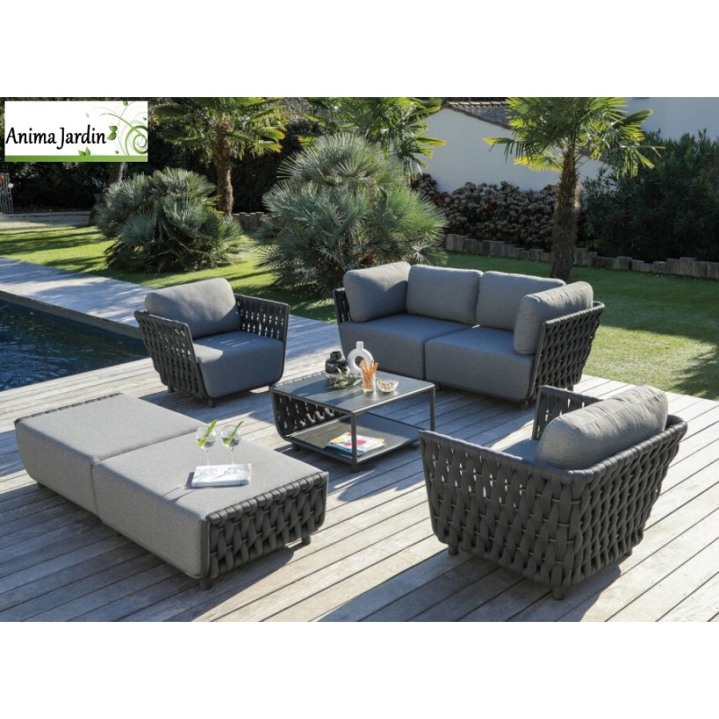 Offrez-vous un coin de détente chic avec le salon de jardin Games. Son canapé deux places, ses deux fauteuils et sa table basse constituent un ensemble complet pour vos moments de relaxation en extérieur. La structure en aluminium assure une solidité à toute épreuve, tandis que les finitions en imitation bois ajoutent une touche d'élégance à votre espace extérieur.