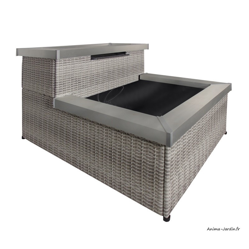 - Spots LED : Installez des spots LED au sol, dirigés vers la fontaine, pour mettre en valeur la texture de la résine tressée et la brillance des bordures en aluminium. Ces lumières douces et discrètes renforcent l'élégance de la structure.
