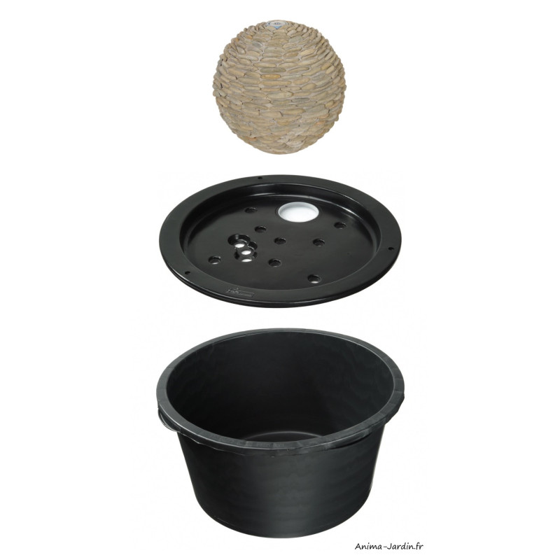 Superbe Fontaine en mouvement d'eau perpétuel, alimentée par une pompe(fournie) en circuit fermé. Fontaine complète avec pompe, facile à monter grâce à un système de vis en laiton et pourvue d'un bouchon de vidange. schema de montage fourni.
