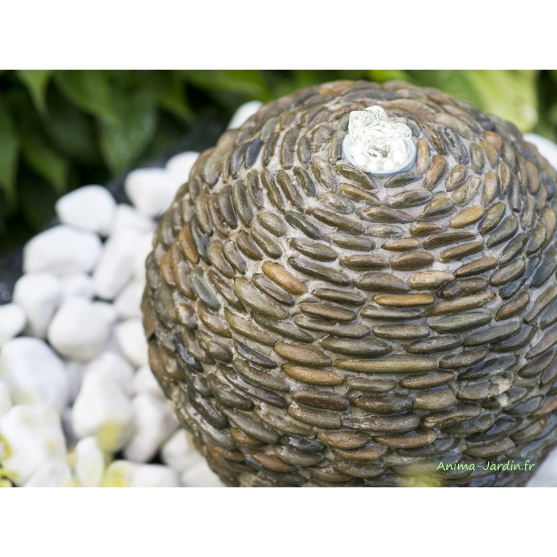 Magnifique sphère en béton brun clair cimentée de galets blancs naturels. Parfait pour sublimer votre extérieur grâce à son système lumineux à LED blanc et de sa couleur en béton brun clair pouvant varier.