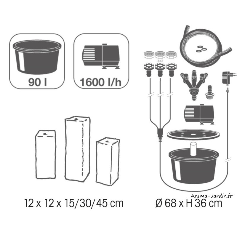 - l’hydrofuge protège la fontaine des intempéries et du gel.