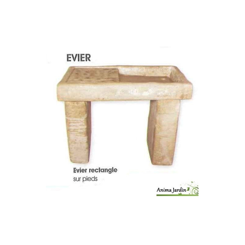 Evier en pierre reconstituée, style ancien, aspect vieilli, rectangulaire, Hairie