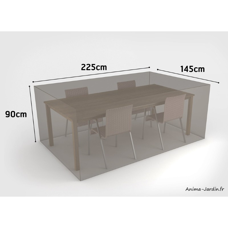 Housse de qualité, découpée dans un tissu polyester enduit de polyuréthane 90 g/m². Housse étanche, idéale pour protéger votre mobilier des intempéries, de la salissure ou bien encore du vieillissement.