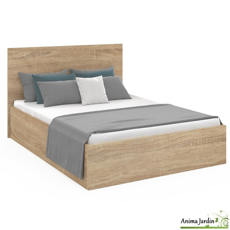 Le lit coffre 160x200 cm Sicilia séduit par son design effet bois naturel et son fonctionnement pratique. Conçu en panneaux de particules, bois et métal, il garantit une solidité optimale et un style chaleureux qui s’intègre parfaitement à toutes les décorations.