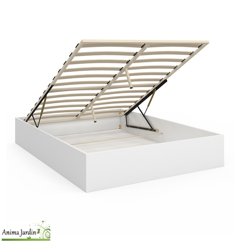 Ce lit est conçu en panneaux de particules, bois et métal, garantissant robustesse et durabilité. Son cadre de lit d’une hauteur de 30 cm intègre un coffre de rangement XXL, idéal pour stocker vos couettes, oreillers ou linge de saison tout en gardant votre chambre bien ordonnée.