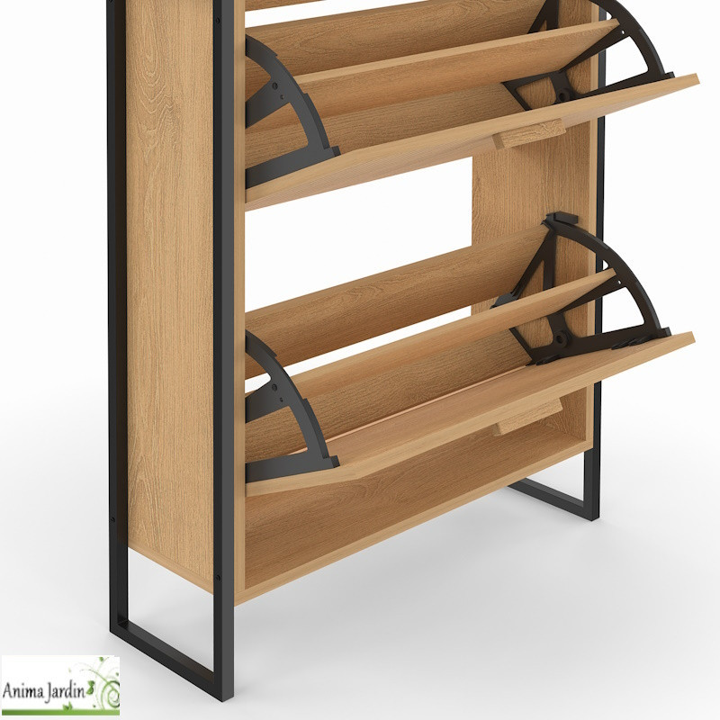 Alliant style industriel et fonctionnalité, le meuble d’entrée Faustin apporte une solution complète pour organiser vos chaussures, manteaux et accessoires. Conçu en panneaux de particules robustes et structure métallique 16x16 mm, il garantit solidité et durabilité au quotidien.