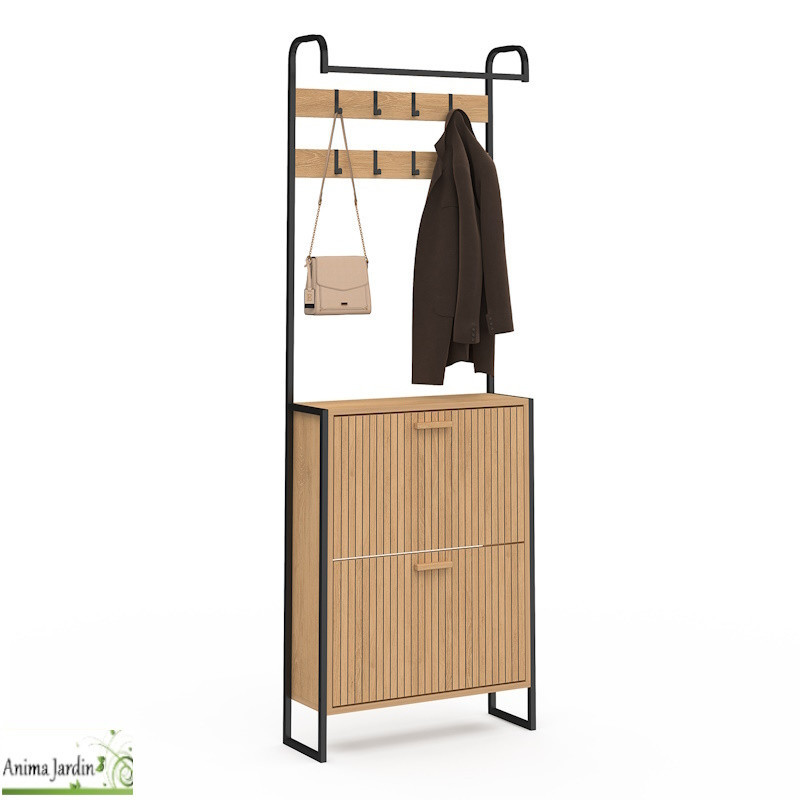 La barre penderie de 60 cm permet de suspendre manteaux, vestes ou écharpes, tandis que ses 8 patères amovibles offrent une modularité parfaite pour vos besoins.