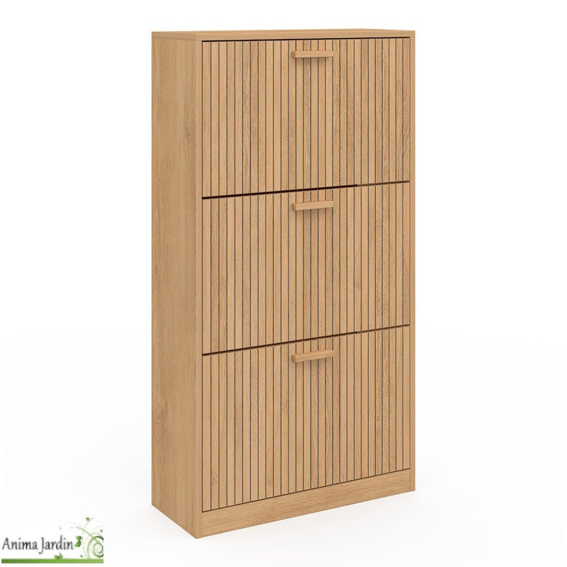 Optimisez le rangement de vos chaussures avec ce meuble à chaussures au design effet lattes de bois, à la fois fonctionnel et élégant. Il peut accueillir jusqu’à 18 paires tout en apportant une touche chaleureuse à votre intérieur.
