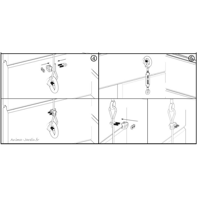 Anneaux et câbles en acier permettant le maintien des parois de votre abri de jardin en cas de tempête. Fixation à l'intérieur.