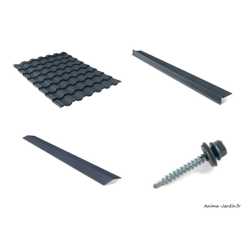 Panneaux tuiles en acier, Bacacier, lot C, toiture pour abri de jardin, Solid