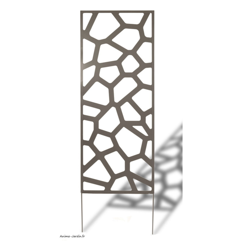 Apportez une touche décorative et fonctionnelle à votre espace extérieur avec le panneau en métal Pierre couleur ardoise. Ce panneau élégant et polyvalent, de dimensions 60 x 150 cm, offre la possibilité de choisir entre une fixation au sol ou une fixation au mur, selon vos besoins. Parfait pour délimiter des zones ou guider la croissance des plantes grimpantes, il présente un motif géométrique qui ajoute un élément à la fois esthétique et pratique à votre jardin. Idéal pour enrichir votre aménagement extérieur tout en étant résistant et durable.