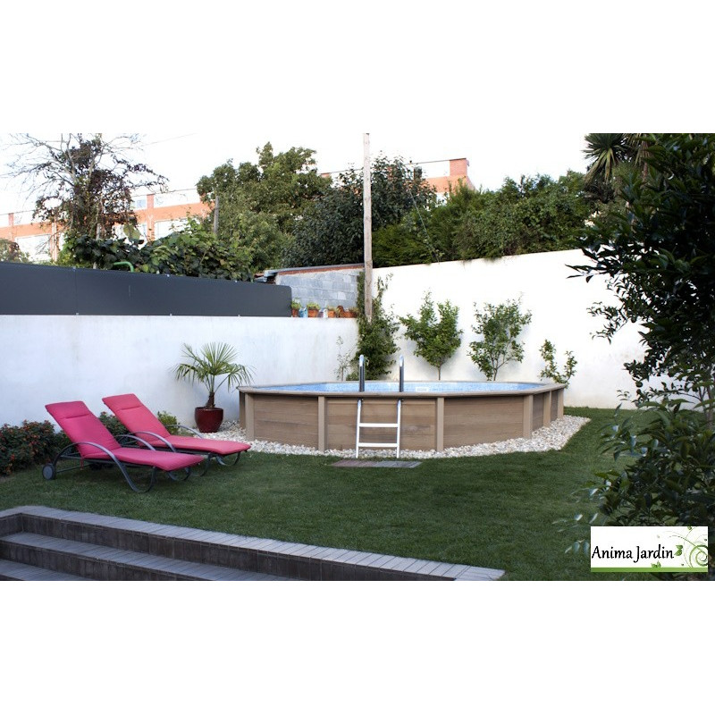 Piscine en bois de 5,10m de la marque Ubbink. Cette superbe piscine octogonale sera parfaite pour l'amusement des petits comme des grands. Un kit complet, échelles, pompe et filtration, liner, feutre anti-bactérien et feutre de paroi vous sera fourni avec la piscine pour son bon fonctionnement. Piscine de qualité.