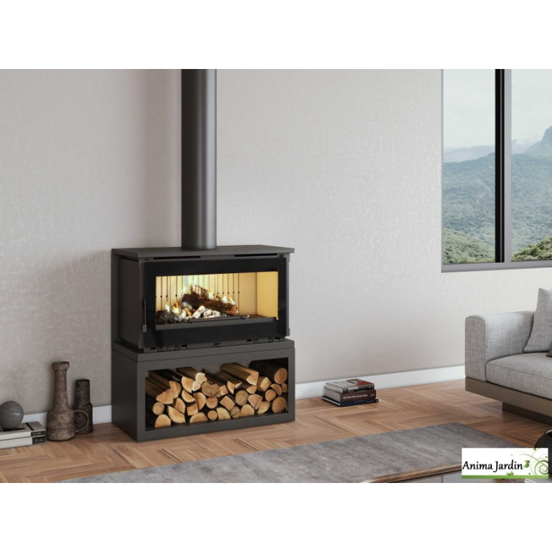 Découvrez le poêle à bois Cordoue III, avec son bûcher intégré et sa peinture anticalorique noire. Assurez une sécurité optimale avec un vitrage en verre vitrocéramique et une porte en fonte robuste.
