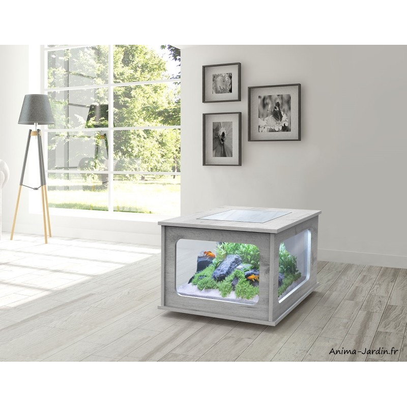Magnifique aquarium, Aquatable. Cette table de salon originale est idéale pour votre salon. Cet aquarium très élégant est vendu avec un système de filtration complet ainsi qu'un système d'éclairage LED 2.0.