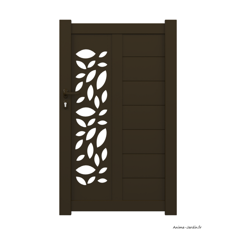 Découvrez notre portillon Ambroise en aluminium mesurant 1m de largeur et 1,62 cm de hauteur. D'allure contemporaine, celui-ci sera parfait pour sécuriser et délimiter votre propriété avec élégance grâce à ses motifs de feuillages intégrés.
