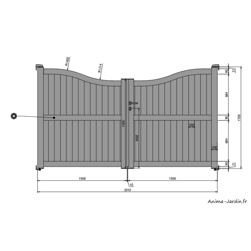 Découvrez l'élégance du portail Lucien en aluminium, spacieux avec ses 3 mètres de largeur et sa hauteur de 1,72 m. Ce portail se révèle être la solution parfaite pour délimiter et sécuriser votre propriété avec style.