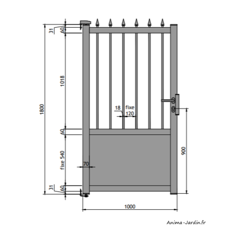Sublimez et métamorphosez votre espace extérieur en optant pour notre portillon en aluminium d'une largeur d'un mètre, disponible dans une gamme de couleurs variées. Ce portillon à l'esthétique traditionnelle a été soigneusement conçu pour valoriser le charme de votre façade, ajoutant une note d'élégance et de convivialité.