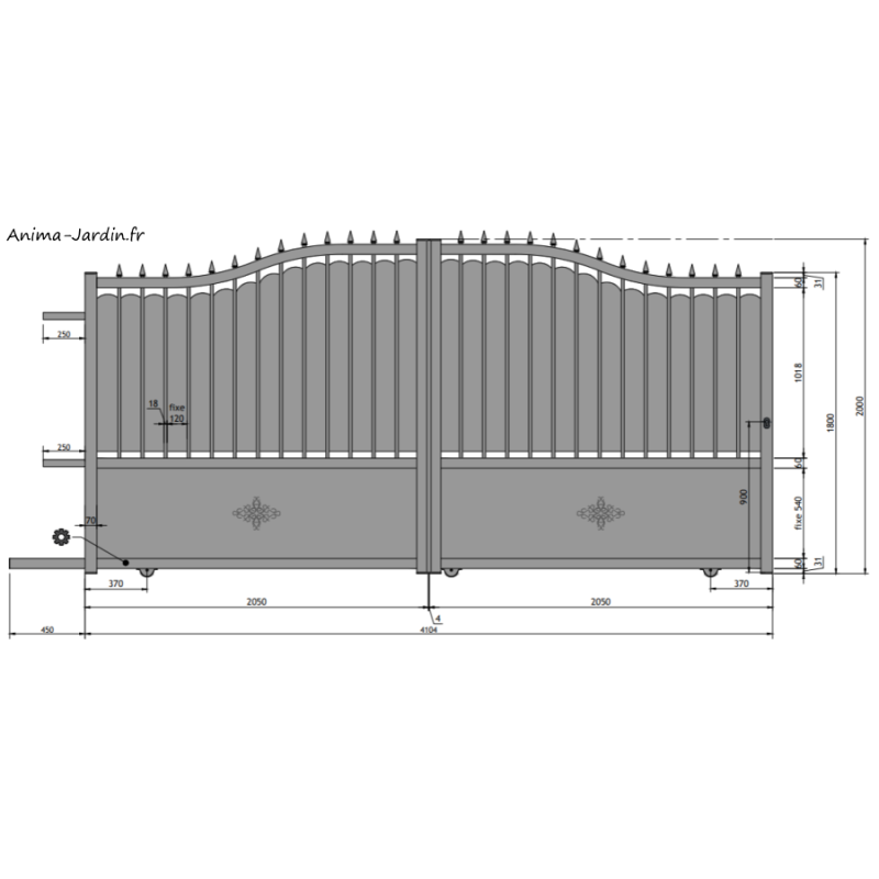 Portail coulissant Rosalie 4,10 m, traditionnel, Anima-Jardin.fr