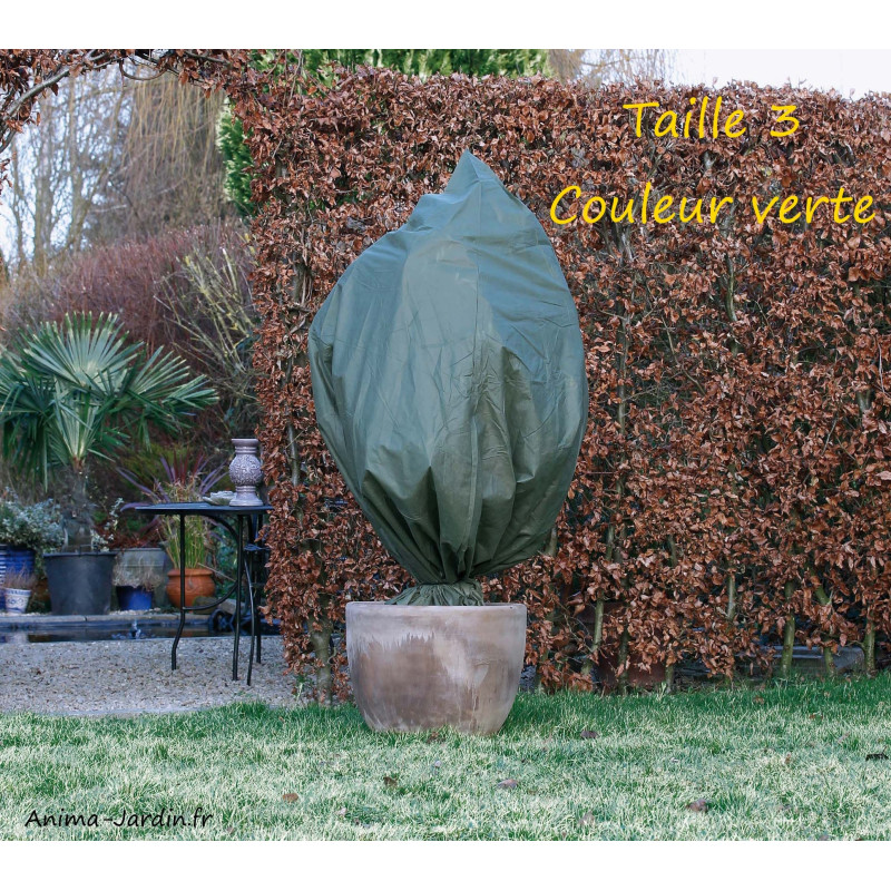 Superbe housse en polypropylène 100g/m² avec zip pour lutter contre le froid hivernal. Permet une isolation thermique entre la plante et l'air froid. Avec un zip pour un enfilage plus facile et un système de resserrage au pied de la plante pour un meilleur maintient.