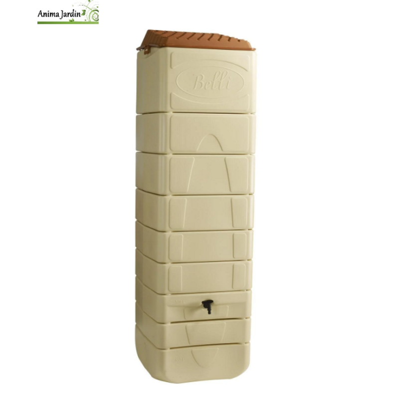 Découvrez le récupérateur d'eau autoportant Belli Jardin de 1000 litres, fabriqué en France. En polyéthylène opaque pour éviter les algues, il est vendu complet avec couvercle, robinet gros débit, et kit raccord chéneau. Disponible en beige et anthracite, il remplace les cuves grillagées et résiste aux UV.
