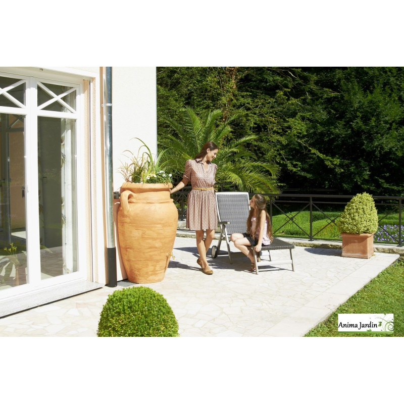 Le récupérateur d'eau de pluie Amphore ANTIK de GRAF est décoratif, il rappelle les poteries du sud, terres anciennes, aspect vieilli par le temps.
