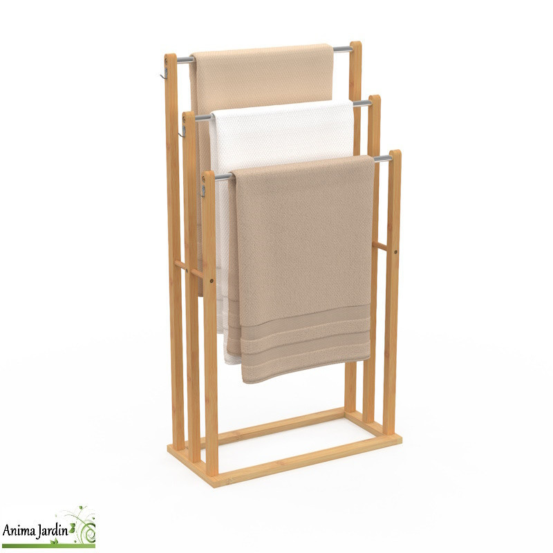 Doté de 3 barres à hauteurs décalées (62, 72 et 82 cm), il permet de faire sécher plusieurs serviettes à la fois, tout en facilitant l’accès et l’aération. Sa structure légère et robuste s’intègre harmonieusement à tout style de décoration : zen, moderne ou scandinave.