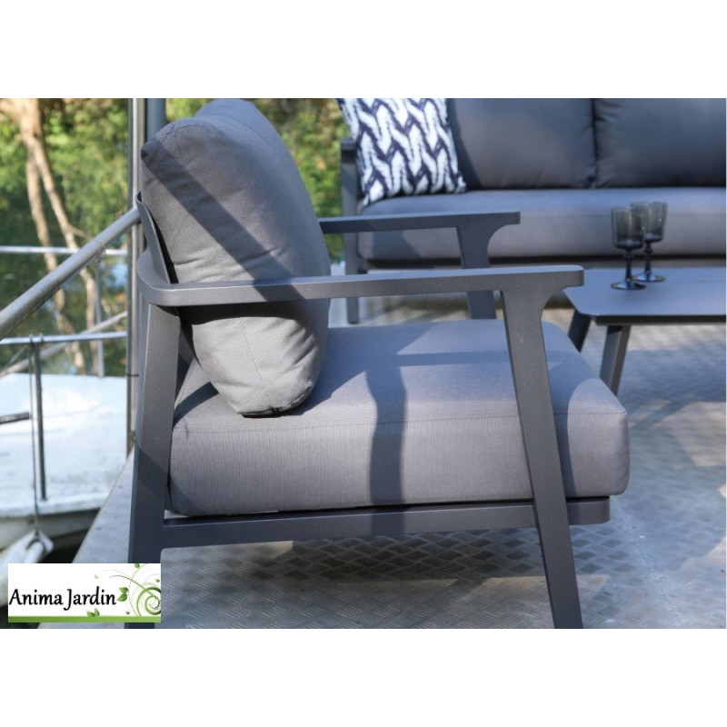 L'aspect esthétique n'est pas en reste avec la structure en aluminium graphite qui confère à l'ensemble une allure moderne et sophistiquée. Les lignes épurées et les matériaux de qualité supérieure font de ce salon un véritable joyau pour votre espace extérieur.
