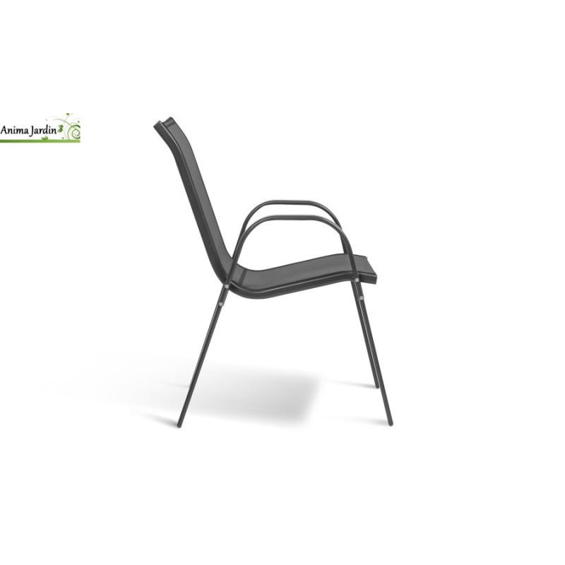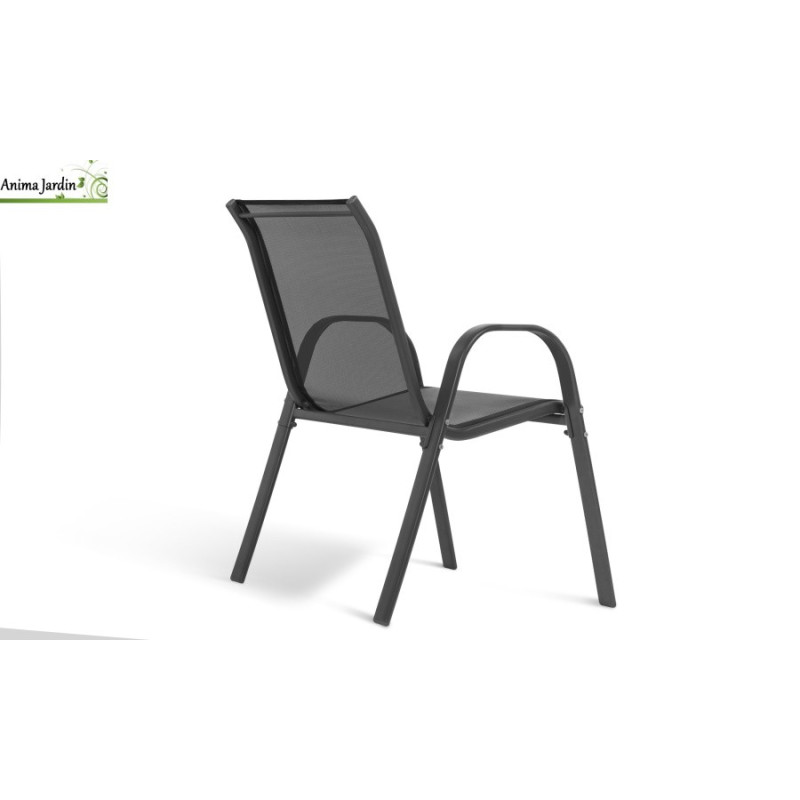Ces chaises sont également empilables, ce qui vous permet de gagner de l'espace lorsque vous ne les utilisez pas. Fabriquées avec une structure en acier robuste et un revêtement en Textilène pour l'assise, elles résistent parfaitement aux intempéries. Leur coloris gris anthracite s'harmonise avec tous les styles de décoration extérieure, ajoutant une touche moderne et élégante à votre jardin.