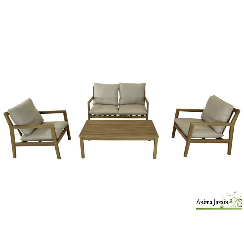Apportez une touche naturelle et élégante à votre extérieur avec le salon de jardin Paya en bois d'acacia. Ce set de 4 pièces comprend 2 fauteuils, 1 canapé 2 places et 1 table basse rectangulaire, offrant confort et style pour vos moments de détente en plein air.