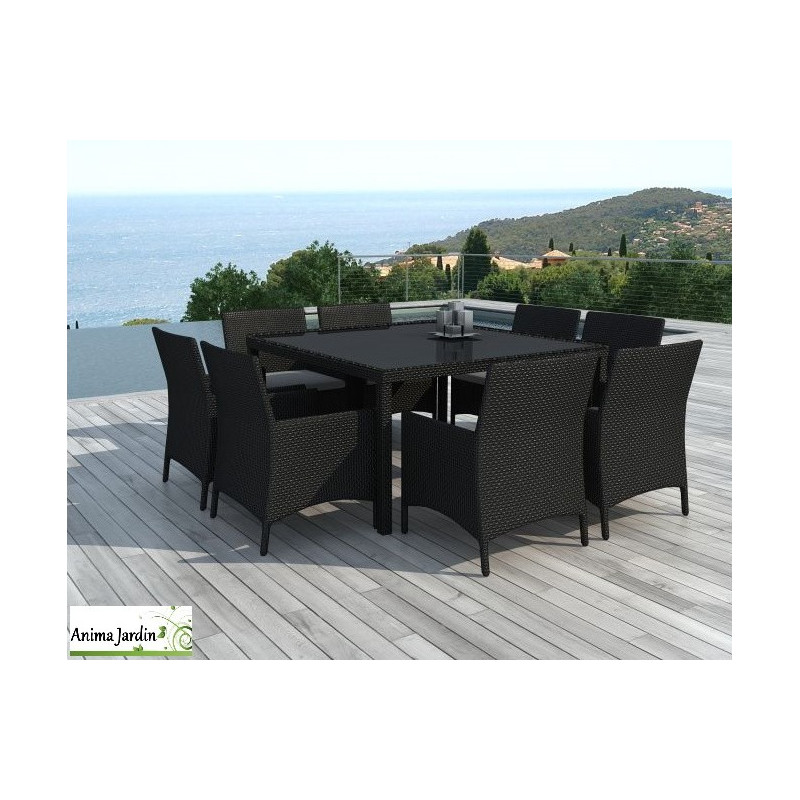 Le salon de jardin Carré en résine tressée noire de Delorm est une solution élégante et confortable pour vos espaces extérieurs. Conçu pour accueillir jusqu'à 8 personnes, cet ensemble comprend une table haute et 8 fauteuils, offrant ainsi un cadre parfait pour les repas en plein air. La structure robuste en aluminium et la résine tressée anti-UV assurent une grande durabilité sans nécessiter d’entretien. Les dimensions généreuses de la table (140 x 140 x 74 cm) et des fauteuils (55 x 51 x 85 cm) garantissent un espace convivial et pratique. Le plateau en verre sécurit de 8 mm d'épaisseur, avec un trou central pour un pied de parasol, ajoute une touche de modernité et de fonctionnalité. Les coussins déhoussables en mousse polyuréthane avec housses en polyester offrent un confort optimal, tout en étant faciles à entretenir.