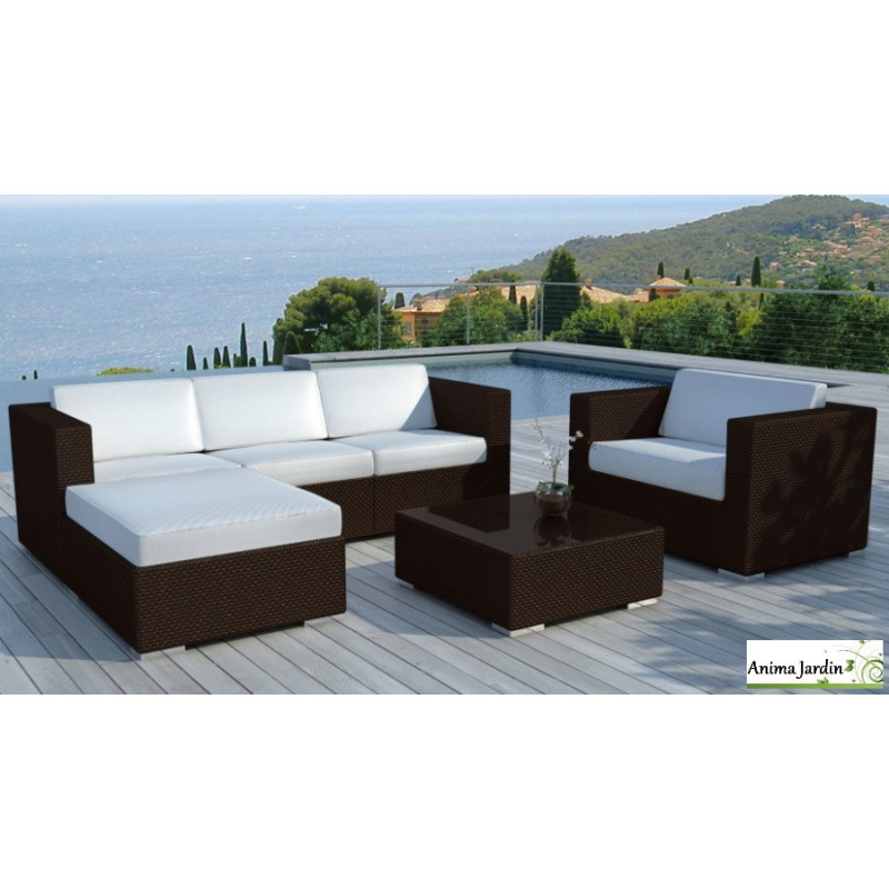 Le salon d'extérieur Copacabana en résine tressée noire est parfait pour des moments de détente en extérieur. Avec son design élégant et sa structure robuste en aluminium, il combine confort et durabilité pour accueillir 5 personnes.