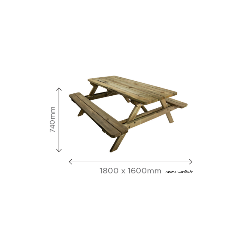 Profitez de moments conviviaux en plein air avec la table pique-nique Family. Fabriquée en épicéa FSC Mix Credit et traitée autoclave Classe 3, cette table offre durabilité et protection contre les éléments. Avec ses dimensions généreuses et ses bancs disposés pour faciliter l'accès, elle peut accueillir jusqu'à 8 personnes confortablement.