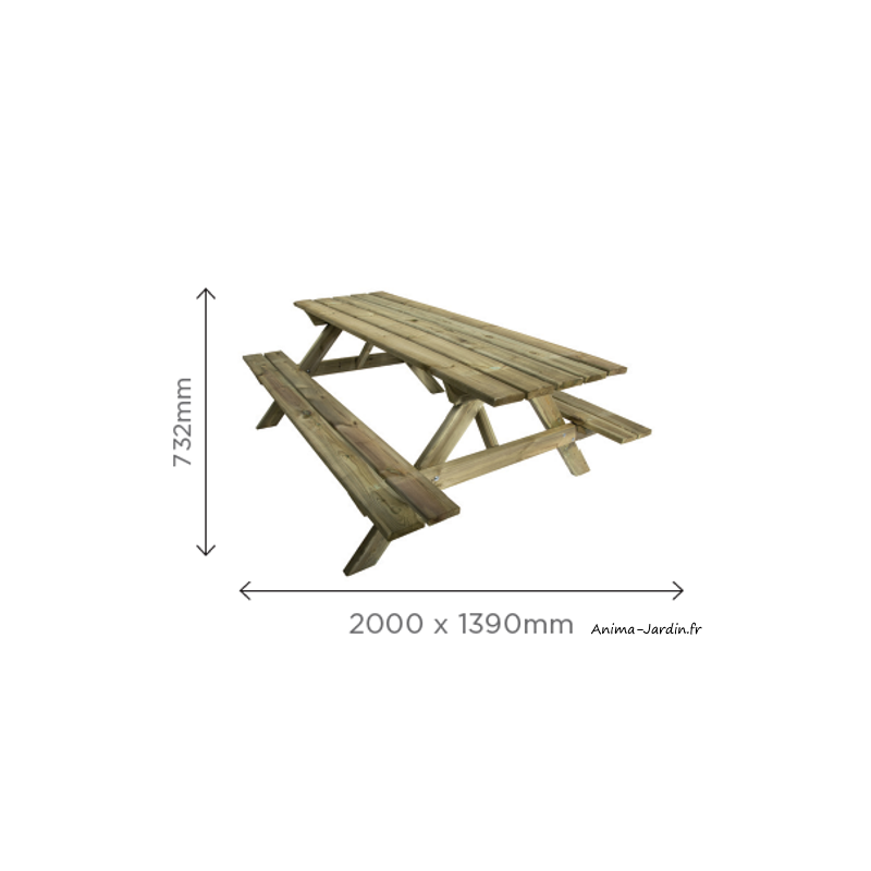 Profitez de moments conviviaux en plein air avec la table pique-nique Family. Fabriquée en épicéa FSC Mix Credit et traitée autoclave Classe 3, cette table offre durabilité et protection contre les éléments. Avec ses dimensions généreuses et ses bancs disposés pour faciliter l'accès, elle peut accueillir jusqu'à 8 personnes confortablement.
