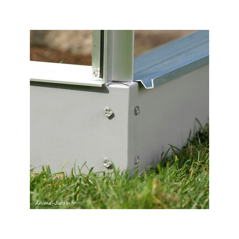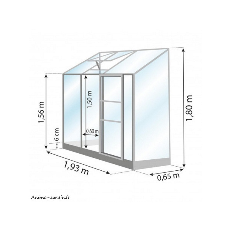 La serre Mélissa est composée d'une porte coulissante, d'une lucarne de toit pour l'aération et enfin d'une base en acier galvanisé, cette base facilitera le montage et protégera le verre des chocs.