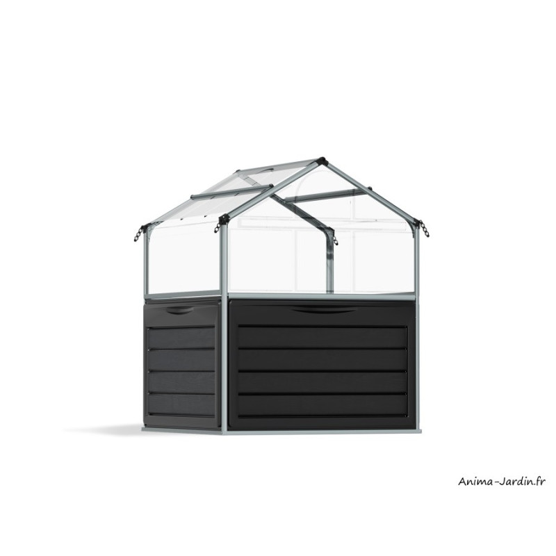 Découvrez la mini-serre surélevée Plant-Inn en aluminium gris, dotée d'un système d'évacuation sous l'ensemble. Son couvercle en polycarbonate, ajustable pour un contrôle précis, assure une protection complète contre les rayons UV nuisibles. Avec ses 6 bacs et 10 suspensions dédiés à vos plantes, cette solution offre une organisation optimale. De plus, son plateau surélevé offre une protection efficace contre les nuisibles tels que les limaces et les chenilles.