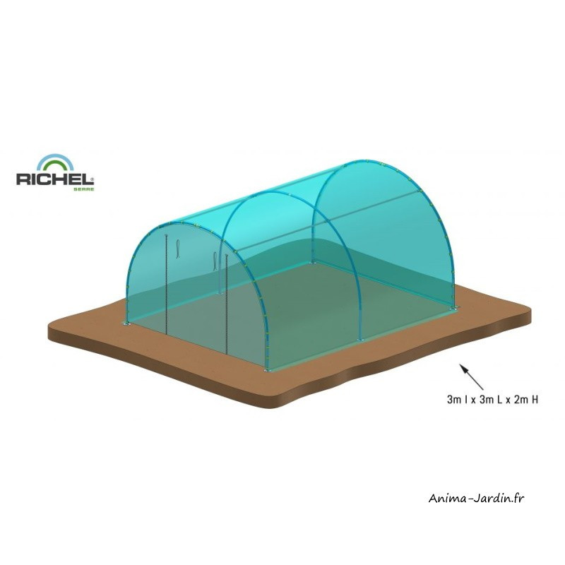 Serre tunnel Richel, 9 m², 1 porte zippée, 9 m², Anima-Jardin.fr