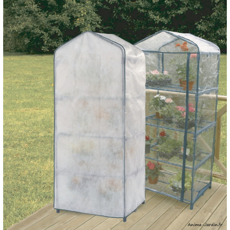 La serre est équipée de 4 étagères. La bâche armée permet une isolation efficace et la régulation de la température par rapport à celle de l'extérieur.