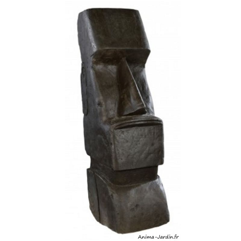 Majestueuse statue Moaï en pierre reconstituée. Emblématique de l'île de pâque, cette statue moderne de couleur noir s'intègrera parfaitement à votre extérieur ou encore votre entrée de maison. Apporté de l'exotisme et de l'originalité à votre jardin. 4 tailles disponibles.