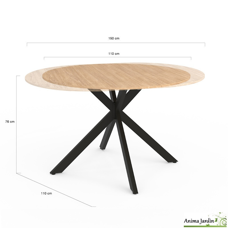 Fabriquée en MDF 15 mm et montée sur une structure solide en métal noir, elle associe la chaleur du bois à un piètement moderne (section 6 x 3 cm), pour un rendu industriel chic. Grâce à son plateau extensible de 110 à 115 cm, elle s’adapte facilement à vos besoins quotidiens ou aux repas entre amis.