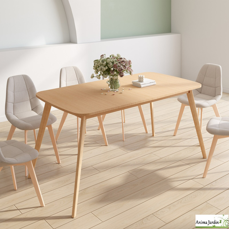 La table à manger extensible Venezia associe chaleur du bois et praticité grâce à son plateau en MDF et ses pieds en bois de hêtre robustes. Ses coins arrondis apportent un style doux et sécurisant, idéal pour toute la famille.
