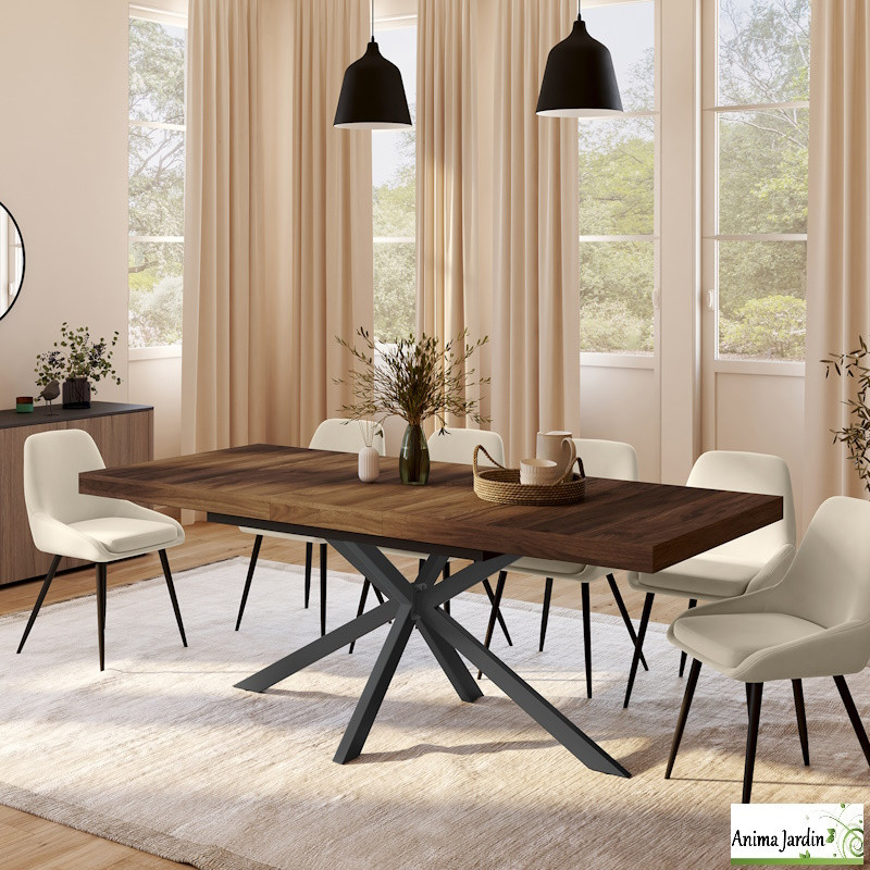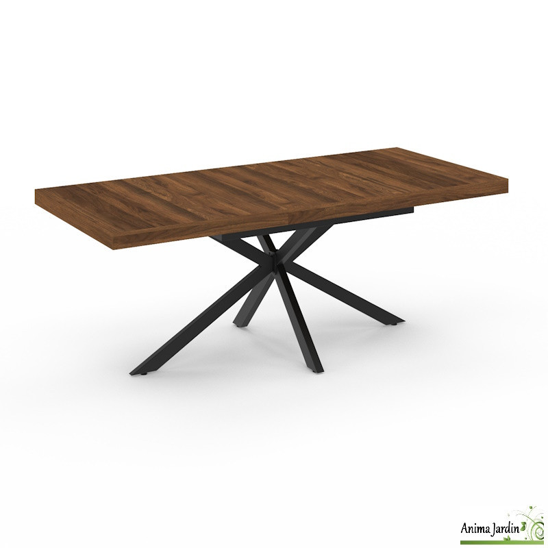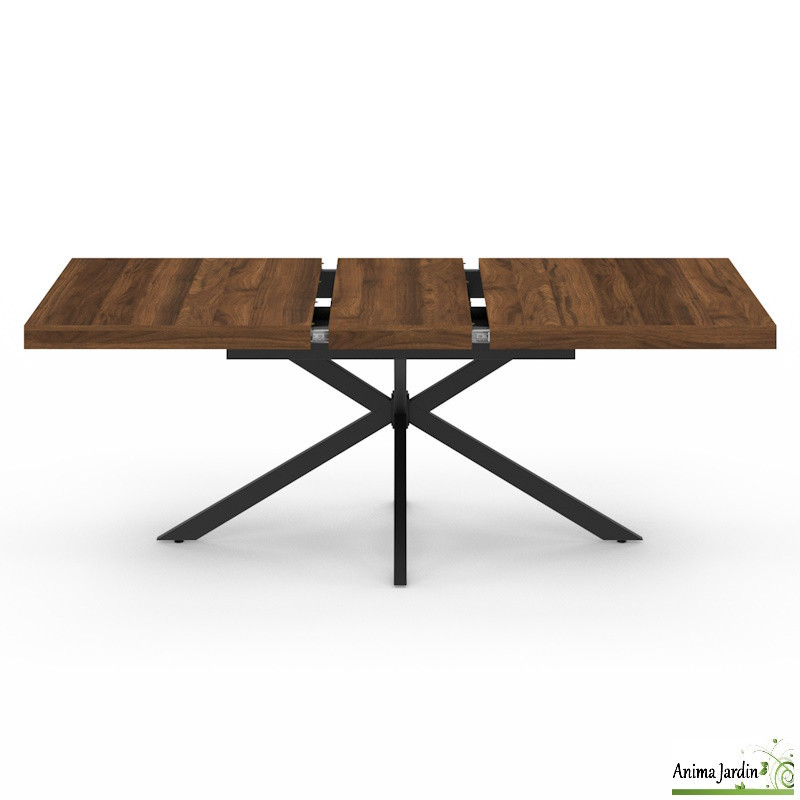 La table à manger extensible Spider allie élégance du bois noyer et modernité grâce à sa structure en métal noir 60 x 30 mm. Son plateau en panneaux de particules mélaminés de 15 mm d’épaisseur offre robustesse et style.