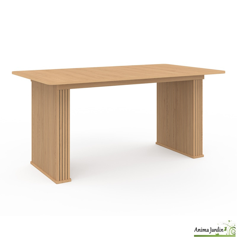 La table à manger Faustin séduit par son design chaleureux et son pied effet lattes de bois, alliant style et convivialité. Conçue en MDF 15/18 mm, elle dispose de deux rallonges de 40 cm permettant de passer aisément de 160 à 240 cm, idéale pour recevoir jusqu’à 12 personnes.