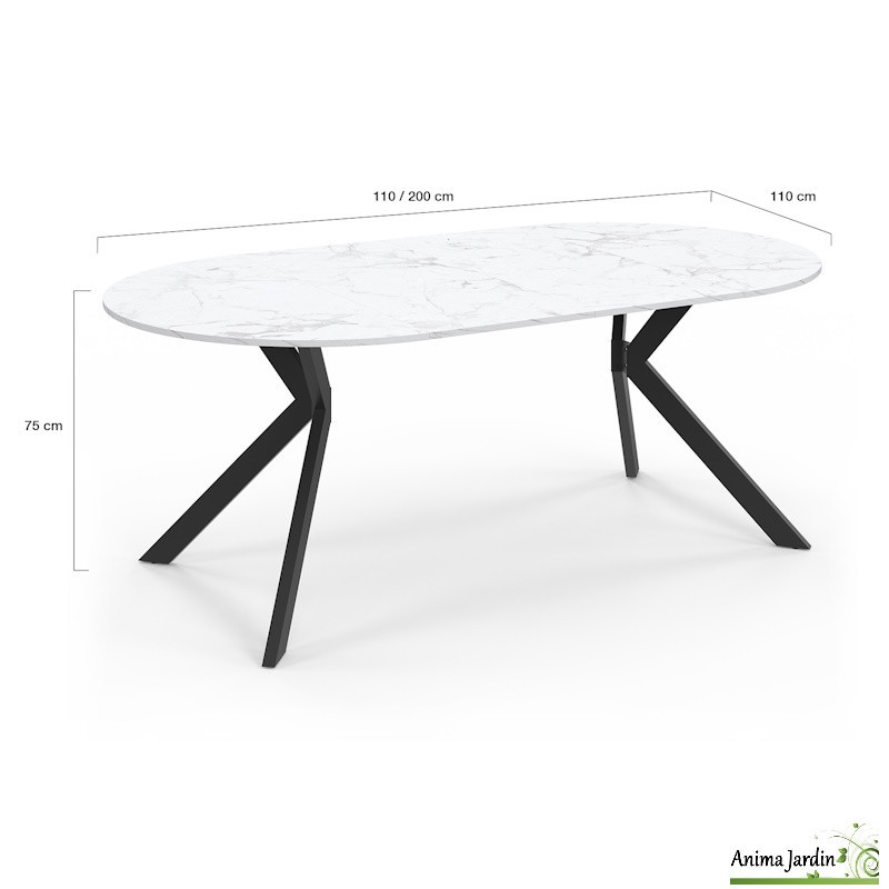 Apportez une touche de luxe moderne à votre salle à manger avec cette table extensible effet marbre blanc et structure noire élégante. Grâce à ses deux rallonges de 40 cm, elle passe facilement de 110 cm à 155 cm puis 200 cm, offrant un confort pour jusqu’à 10 convives.