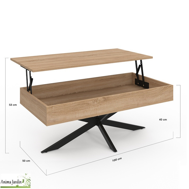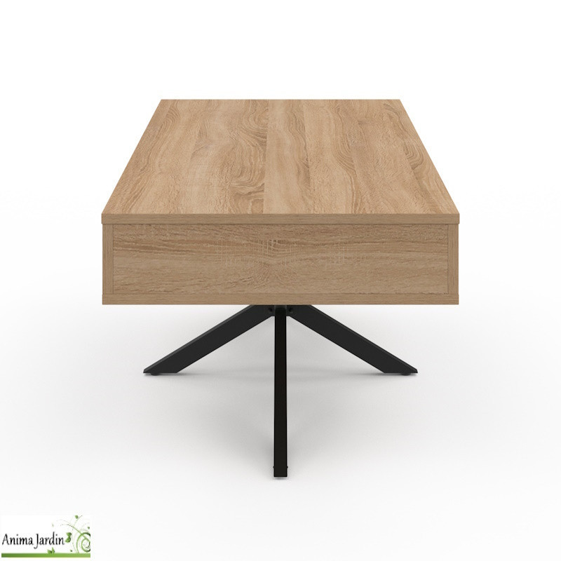Conçue en MDF de 15 mm et montée sur une structure en métal noir (20 x 40 mm), elle offre une grande robustesse et une stabilité optimale. Le duo bois naturel et métal noir apporte un style industriel élégant, parfaitement adapté aux salons contemporains.