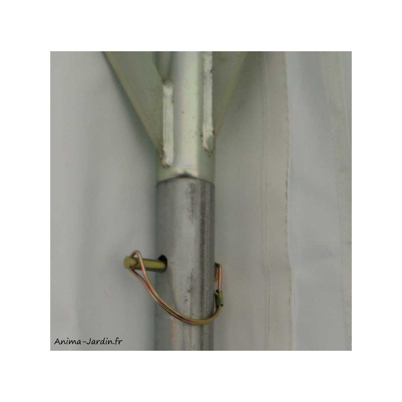 Cette tente se distingue par son absence de visserie, facilitant ainsi son montage. Les angles, égaux et interchangeables, garantissent une installation sans complication. Les barres de tension des rideaux, conçues en acier galvanisé de 30 mm de diamètre et 1,5 mm d'épaisseur, renforcent la stabilité de la structure.