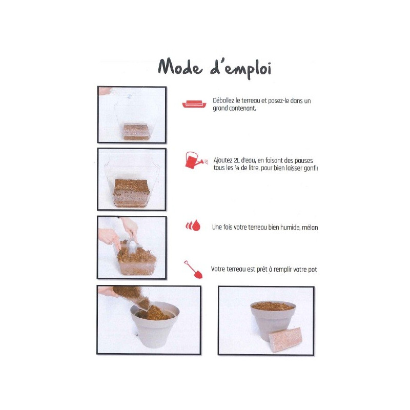 Arrosez ce terreau compacté (2 L d'eau) et obtenez au total 8L de terreau. Transport inclus